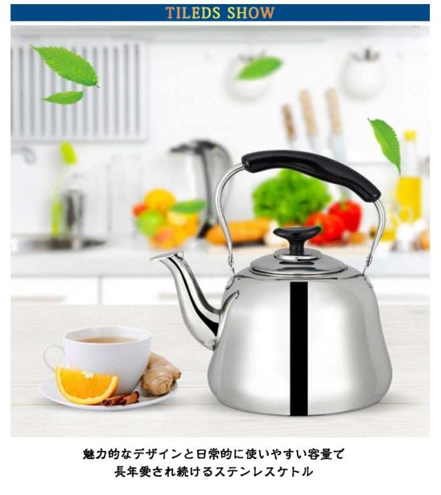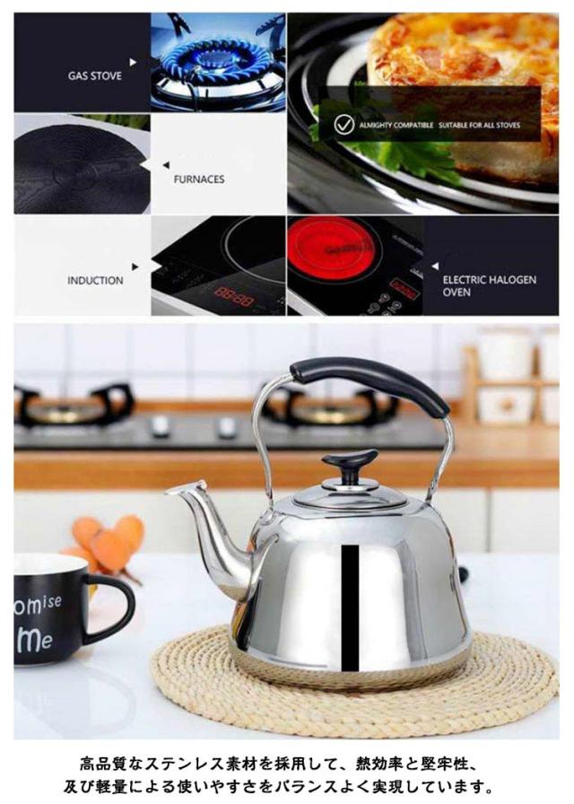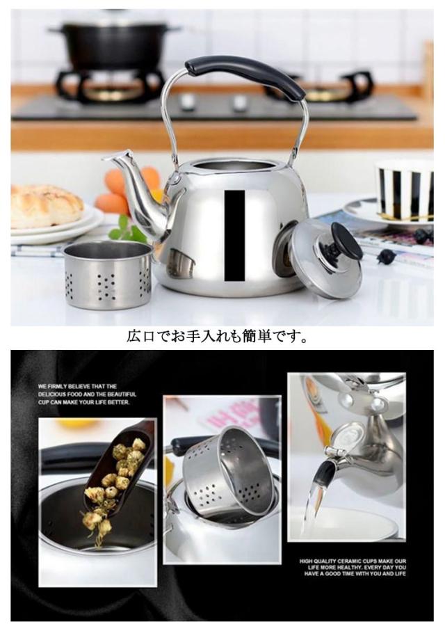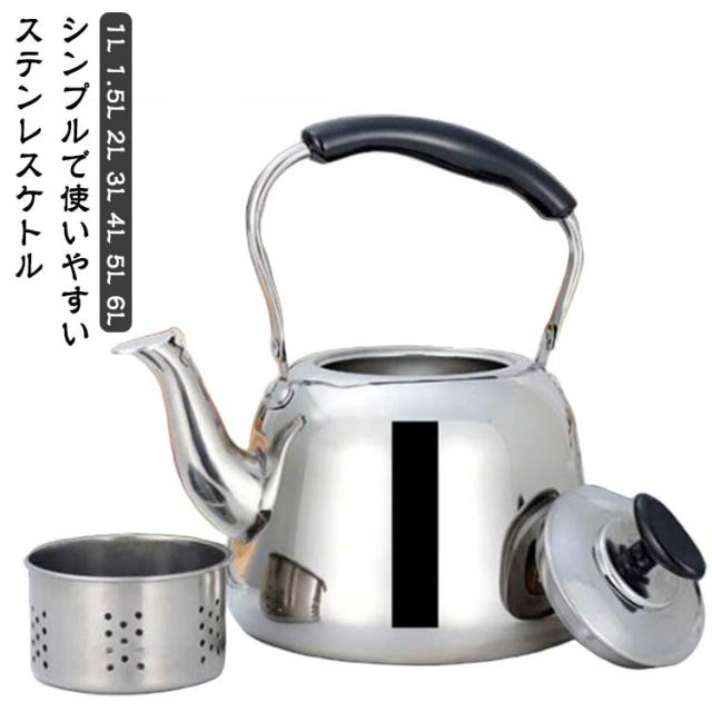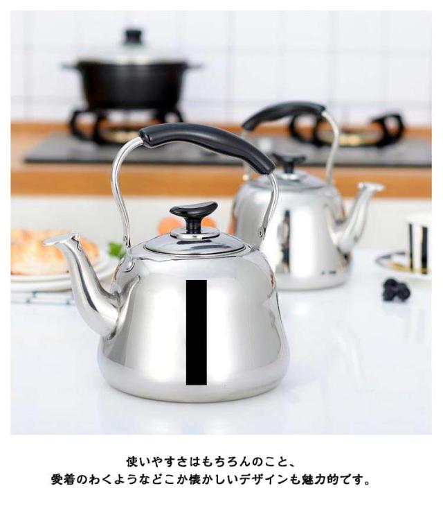 3L ステンレス ガス火対応 広口 ケトル 4L 5L ケットル IH対応 ヤカン 2L 薬缶 大容量 洗いやすい 麦茶 作り 湯沸かし やかん 沸かす お湯 沸騰 笛吹 笛吹きケトル 使いやすい 錆びない 直火対応 ステンレスケトル シンプル