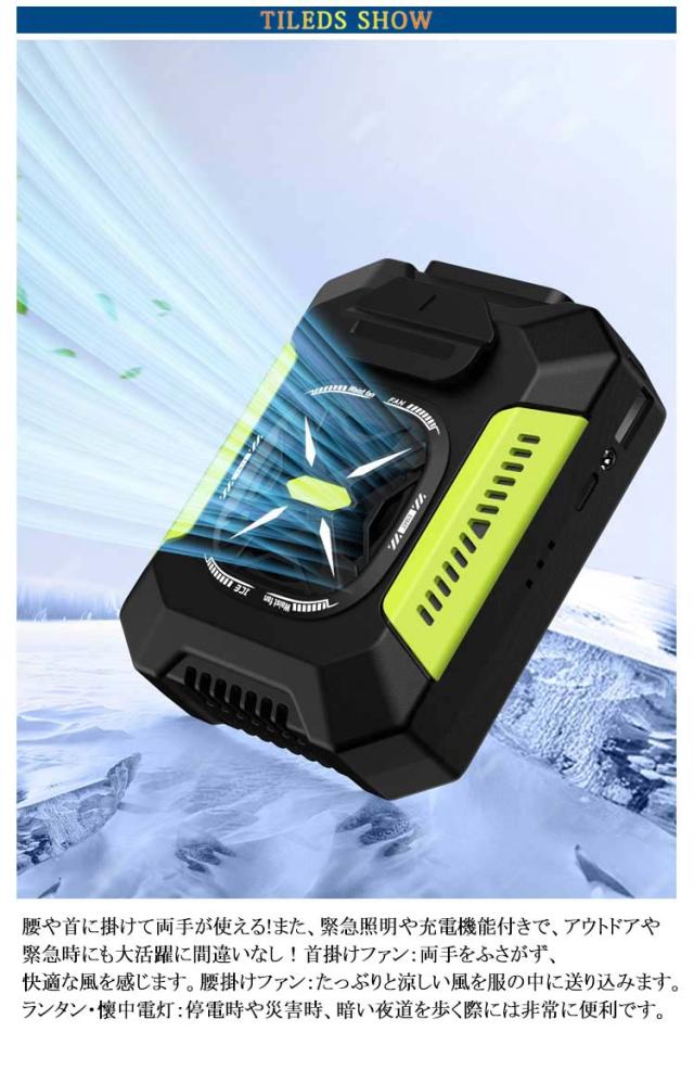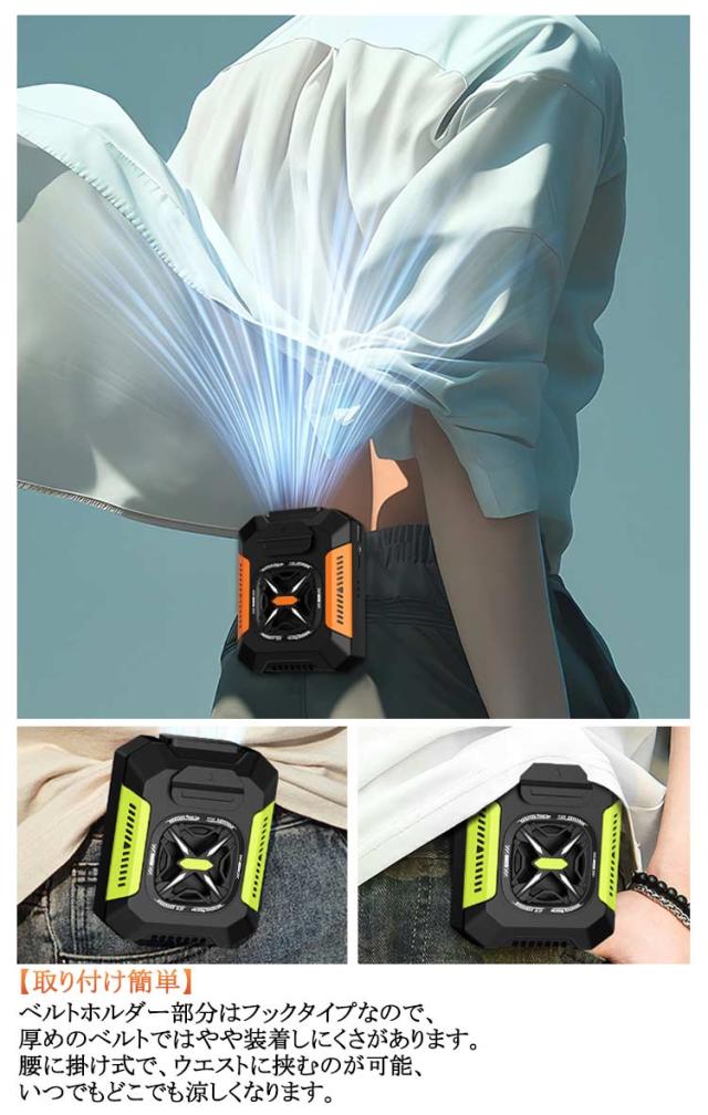 | 【4WAY!多機能ベルトファン】腰掛け、首掛け、手持ち、卓上一台4役使いシーンによって使い分けられます。 腰や首に掛けて両手が使える!また、緊急照明や充電機能付きで、アウトドアや緊急時にも大活躍に間違いなし!首掛けファン:両手をふさがず、快適な風を感じます。腰掛けファン:たっぶりと涼しい風を服の中に送り込みます。ランタン・懷中電灯:停電時や災害時、暗い夜道を歩く際には非常に便利です。 【3段階風量調整】自然に近い弱風から強風まで3段階の風量調節が可能で、気温に合わせて自由に調節できます。 【懐中電灯機能】LED照明用ランプが付いてあり暗い場所での作業、緊急時などの照明になります。外出先、キャンペン場でスマホを充電可能で、一台で懐中電灯、扇風機の機能があり、もっと便利になります。 【取り付け簡単】ベルトホルダー部分はフックタイプなので、厚めのベルトではやや装着しにくさがあります。腰に掛け式で、ウエストに挟むのが可能、いつでもどこでも涼しくなります。 【USB充電】大容量電池を内蔵し、USB充電方式を採用しています。パソコン、、アダプターなどで簡単に充電ができます。 【アウトドア作業に最適】工事現場、厨房、農作業、配達作業、工場内、倉庫、スポーツ観戦、お祭り、アウトドア活動等々・・様々なシーンで熱中症対策品として大活躍です。 | |