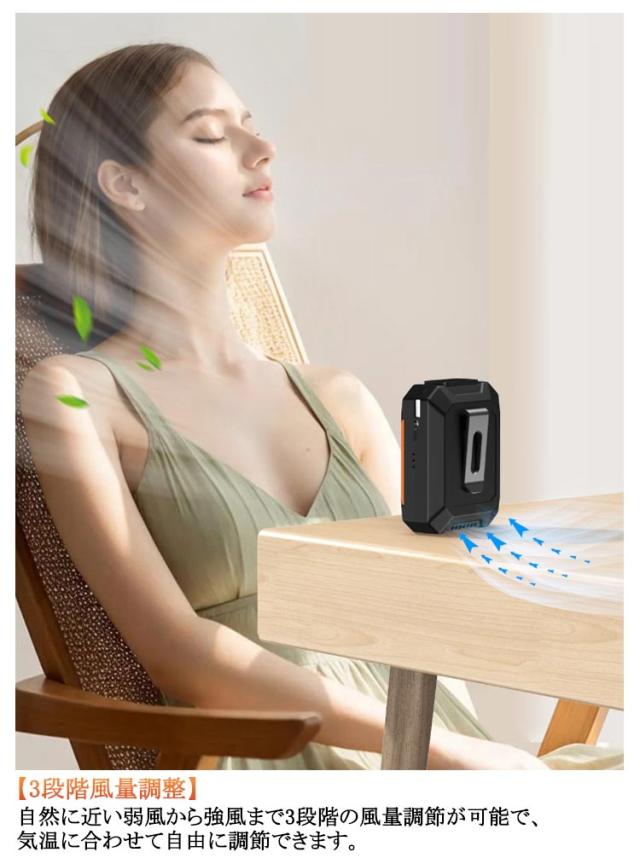 | サイズについての説明 | バッテリー容量:5000mAh 115*90mm ファン風量:弱、中、強(3段階調節可能) 弱-風速6.3m/s【涼しい】、中-風速11.3m/s【風が首に当たる】、強-風速14.5m/s【服が吹いて全身が涼しい】 |