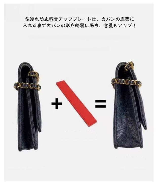 | 大事なチェーンウォレットを長く綺麗にお使いいただくための専用バッグアクセサリーです。 3点セット:チェーン擦れ防止プロテクター+型崩れ防止 シェイパー(底板)+チャックカバー 型崩れ防止容量アッププレートは、カバンの底面に入れる事でカバンの形を綺麗に保ち、容量もアップ! エッジ擦れ防止プレートは、チェーンによるカバンのエッジ部分のスレを防止! | |