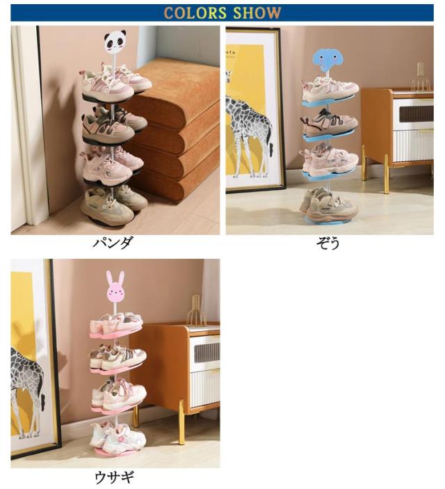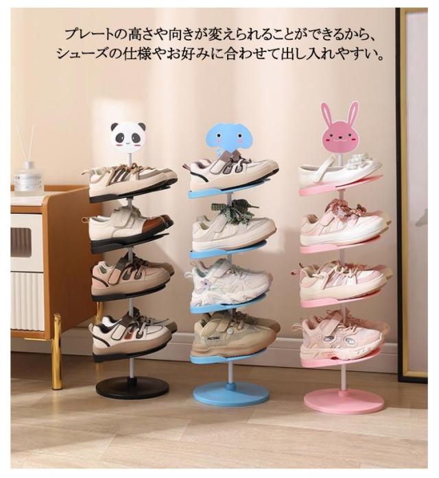 下駄箱 省スペース キッズ 玄関収納 360度回転 5段 6段 子ども用シューズラック 子供靴 収納ラック 4段 シューズラック 靴箱 子供用 シューズ収納 シューズラック キッズ用 ウサギ シューズボックス アニマル 動物 パンダ 子供靴 象 靴入れ おしゃれ