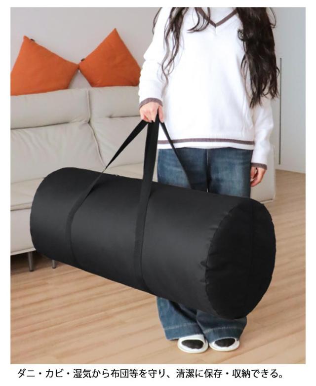 | ・丸めて収納する布団収納袋 ・タテヨコ置けるコンパクトな筒型 ・持ち運びにも便利な持ち手付き ・ダニ・カビ・湿気から布団等を守り、清潔に保存・収納できる。 | |