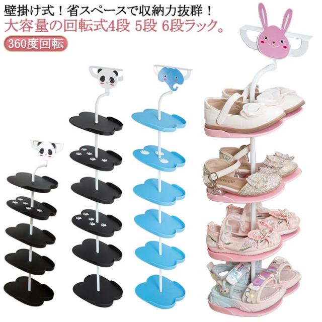シューズラック シューズラック 子供靴 6段 玄関収納 キッズ 靴箱 シューズ収納 靴 収納ラック 4段 下駄箱 5段 壁掛け式 子供用 360度回転 省スペース 子供靴 動物 キッズ用 アニマル 子ども用シューズラック パンダ ウサギ 象 靴入れ おしゃれ