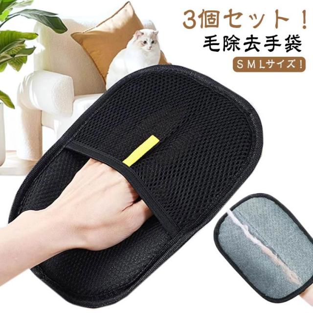 ペット用毛取りグローブ ペット用 静電気除去手袋 3個セット 静電気防止 猫の毛取り手袋 犬用 抜け毛取り グルーミンググローブ 毛取り手袋 猫の毛取り 再利用可能 洗える 短毛・中毛・長毛 送料無料