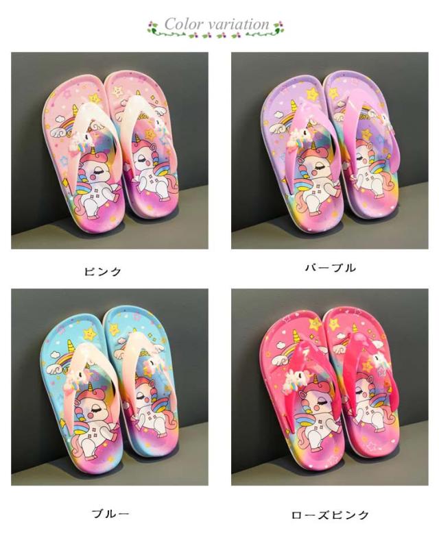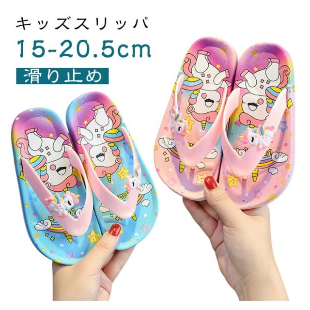 | キッズスリッパ 15-20.5cm 春夏の訪れと共に、子供たちの室内外での活動が活発になる この時期快適で安全な履き心地を提供するトングタイプのサンダルが必需品となります 滑りにくい設計で 通園や小学生の日常使いに最適 ユニコーンや虹のデザインが施されたこのサンダルは お子様の足元を楽しく、そして滑りにくくになります お子様の成長に合わせて選べるサイズと、元気いっぱいのデザインで 春のお出かけをもっと楽しくしましょう | |
