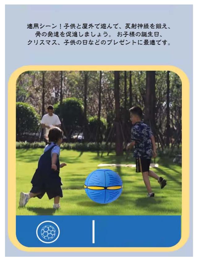 | 弾力性に優れ、2形状、自由に切り替え可能。UFOマジックボール 変形可能なマジックボール 皮膚骨の発達を促進し、体を強化し、赤ちゃんの骨成長を促進し、個性を変える、子供たちに子供たちに免疫システムを強化し、子供の健康を保護します。 あなたはそれをピクニック、学校、パーティー、集会などに取り込むことができ、あなたの犬と一緒に遊びのおもちゃとしても使えます。 3つのLEDライトタイプが内蔵されているため、夜にも楽しく遊べます♪ 適用シーン!子供と屋外で遊んで、反射神経を鍛え、骨の発達を促進しましょう。 お子様の誕生日、クリスマス、子供の日などのプレゼントに最適です。 | |