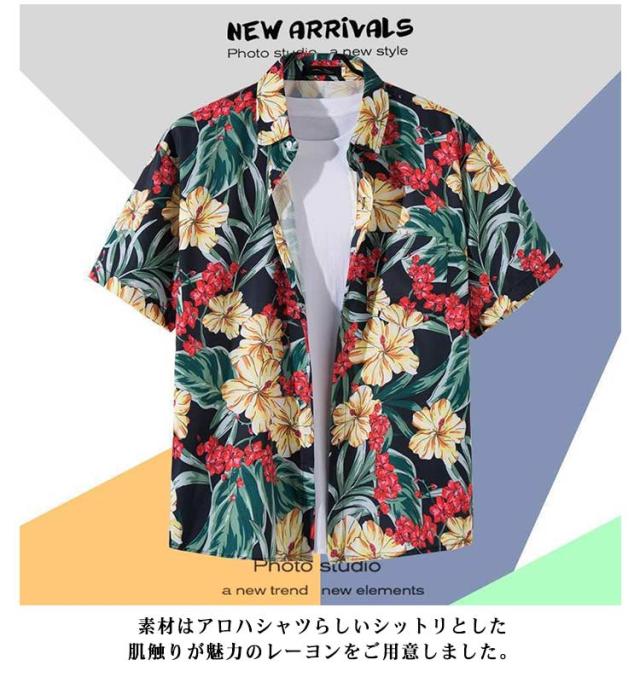 アロハシャツ メンズ シャツ ウェア 半袖シャツ レーヨンアロハシャツ 開襟シャツ 柄シャツ カジュアルシャツ 夏 夏服 オープンカラー サーフ系 海 ビーチ ペア 花柄 シャツ 父の日 プレゼント ギフト ボタニカル柄 アロハシャツ
