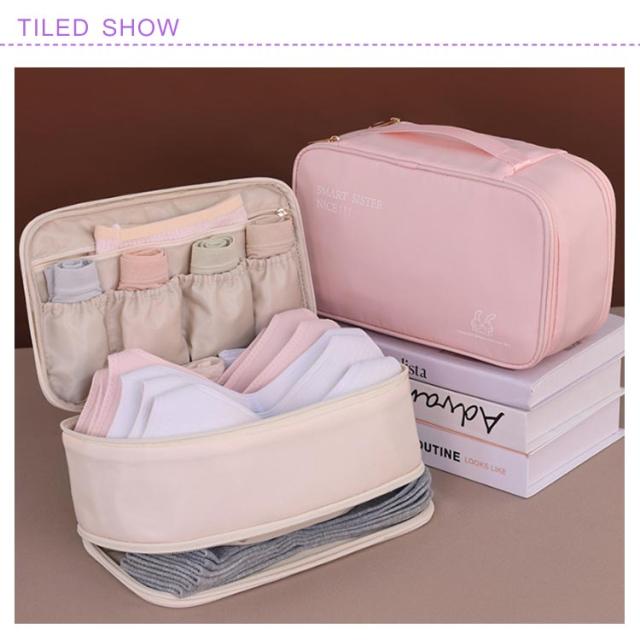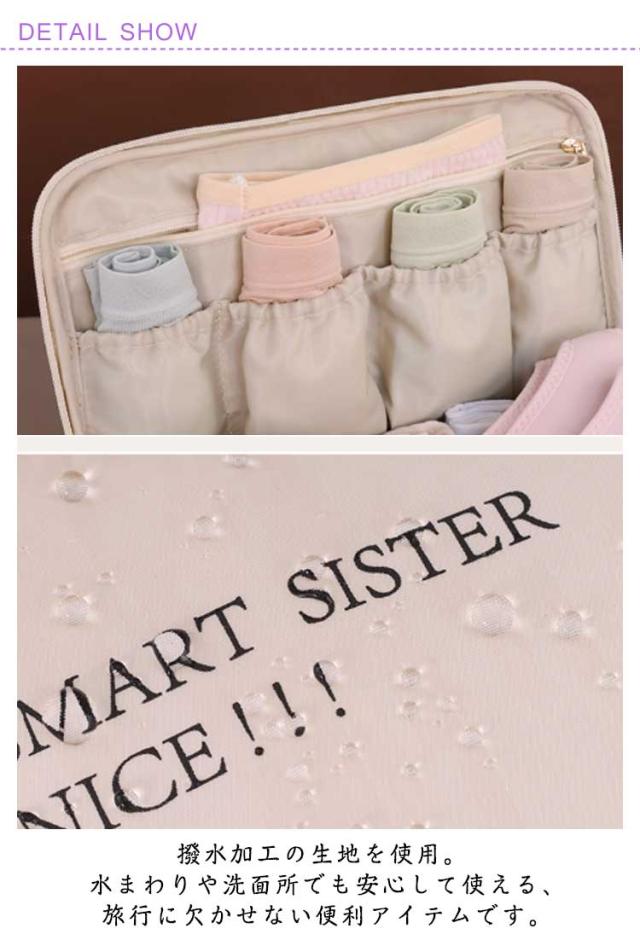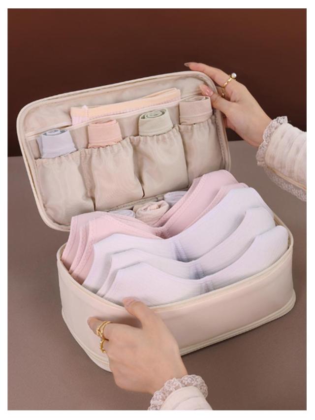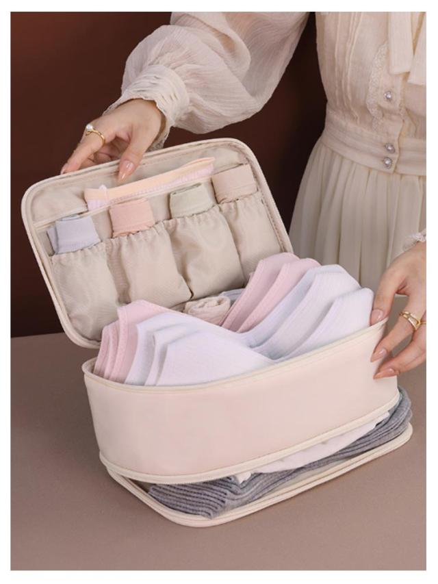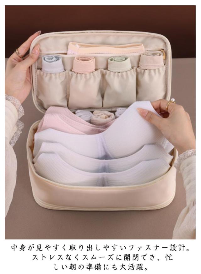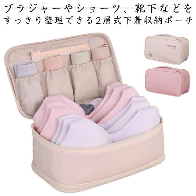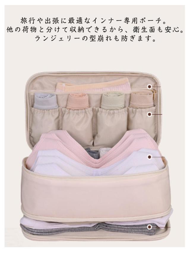靴下収納 二層構造 旅行ポーチ ショーツ収納 インナーケース 出張用ポーチ ブラ収納 整理ポーチ トラベルポーチ レディース コンパクト収納 衣類収納バッグ 小物整理ポーチ 撥水 ランジェリーポーチ 下着収納ポーチ 収納便利 ベージュ