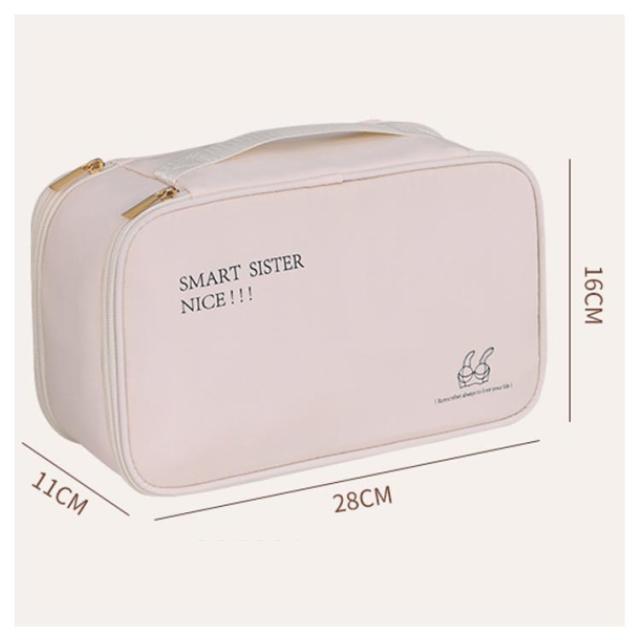 | ブラジャーやショーツ、靴下などをすっきり整理できる2層式下着収納ポーチ シンプルながら可愛らしさのあるデザイン。 ベージュとピンクの2色展開 種類別に分けて収納できるので、バッグの中がいつでも清潔でスマート。 旅行や出張に最適なインナー専用ポーチ。 他の荷物と分けて収納できるから、衛生面も安心。ランジェリーの型崩れも防ぎます。 撥水加工の生地を使用。 水まわりや洗面所でも安心して使える、旅行に欠かせない便利アイテムです。 中身が見やすく取り出しやすいファスナー設計。 ストレスなくスムーズに開閉でき、忙しい朝の準備にも大活躍。 軽量・コンパクトな設計で、スーツケースやバッグにもスッキリ収まるサイズ感。 日常使いから長期旅行まで幅広く対応します。 | |