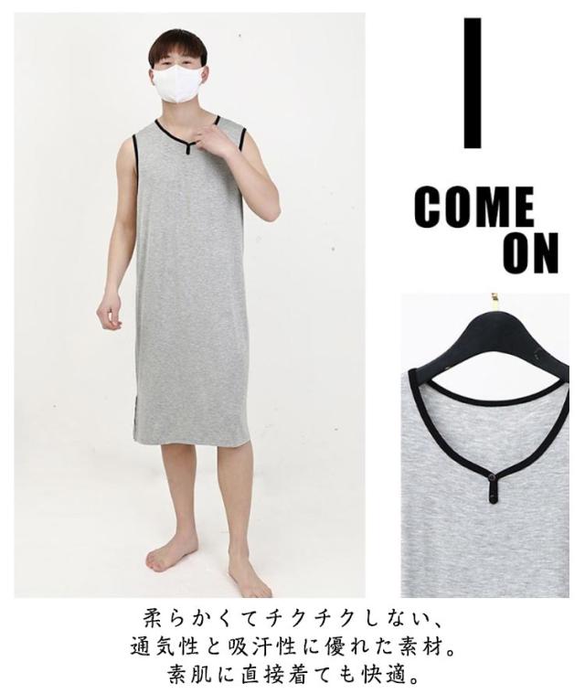 | 夏にぴったりなノースリーブワンピース型ルームウェア 着脱が簡単なストレスフリーデザイン 暑い季節でも快適に過ごせる、薄手で涼しいメンズ向けルームワンピース。風通しが良く、寝汗をかいてもサラッと快適。 前開きなしで、頭からすっぽりかぶるだけの簡単着脱。病院や介護、入院中にも便利な構造。 柔らかくてチクチクしない、通気性と吸汗性に優れた素材。素肌に直接着ても快適。 無地のミニマルデザインで、年齢問わず着用可能。ゆったりとしたサイズ感で締めつけ感ゼロ。 家でのリラックスタイムはもちろん、病院や介護施設でも使える実用的な1枚。見た目も自然で、違和感なく着られる。 | |
