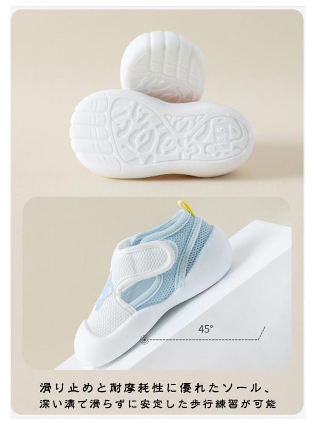 | つま先がガードされているので1歳児でも安心です マジックテープで調整できるので助かります! 通気性のあるオープンメッシュデザインで通気性と快適性を実現 幅広の丸いつま先デザインで赤ちゃんの足が伸びるのに十分なスペースを確保 滑り止めと耐摩耗性に優れたソール、深い溝で滑らずに安定した歩行練習が可能 | |