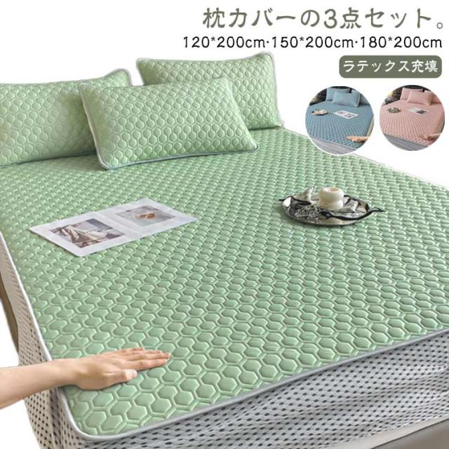 敷きパッド シングル 接触冷感 3点セット 枕カバー ダブル セミダブル ひんやり キング 冷たい 敷パッド ベットパッド クール ひんやり敷きパッド 冷感敷きパッド 接触冷感敷きパッド 冷感 キルト ラテックス