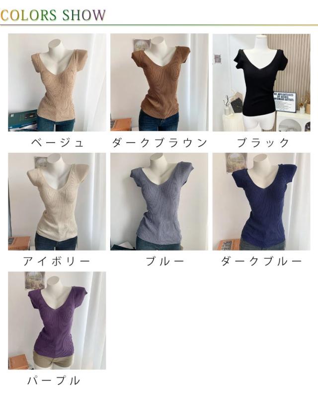 送料無料 サマーニット Vネック 接触冷感 ニット シンプル ニットトップス tシャツ 春夏 涼しい ストレッチ トップス 吸汗速乾 半袖 冷感 ニットソー 薄手 ひんやり 無地 レディース おしゃれ キレイめ 30代