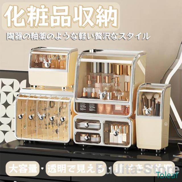 【クリアカバー付き】化粧ボックスは蓋付きで、ホコリやウイルスから化粧品を守ります。サッと拭くだけで汚れがキレイに落ちます。洗面所に置いても使用可能!クリアカバー設計で化粧箱中身をよく見え、ショーケースにもなります。