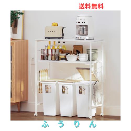 LunarLight ごみ箱上ラック キッチンツールラック 幅80×奥行40×高さ100cm 電子レンジ台 オープンラック プリンタ台 2口コンセント付き