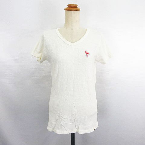 【中古】ロキシー ROXY Tシャツ カットソー 半袖 Vネック ロゴ コットン L アイボリー ※EKM レディース