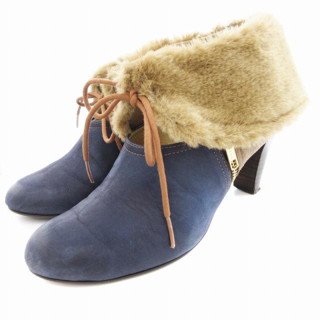 【中古】ヒミコ 卑弥呼 ブーティ シューズ フェイクファー 切替 ハイヒール チャンキーヒール 24?p