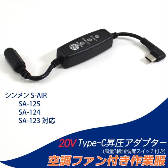シンメン S-AIR 対応 変換ケーブル 2025年 20V SA-125 SA-225 対応 Type-C昇圧 アダプター L型 20V ファン付き作業服 Type-C PD対応 モバイルバッテリー 昇圧アダプタ 昇圧ケーブル USB-C タイプC 昇圧コンバータ 空調ファンウェア 空調ファン付き スイッチ付き 【20V-C】