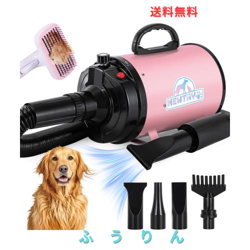 NEWTRY ペットドライヤー 犬用 ペット用 ドライヤー ブロワー 送風機 無段階速度制御 四つのノズル付き ブラシ付き 風速、温度調整可能