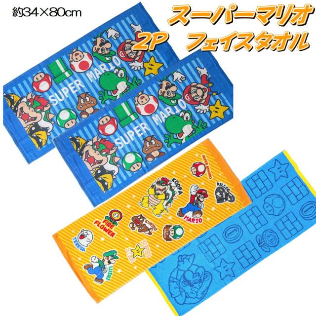 スーパーマリオ フェイスタオル 2枚組 綿100% 4992272648270 タオル 約34×80cm マリオ タオル フェイスタオル キャラクター タオル マリオタオル ルイージタオル キャラクタータオル