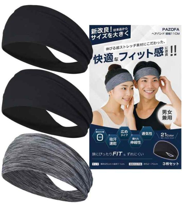 【ヘアバンド仕様】 素材は88%ポリエステル、12%ポリウレタンの薄てタイプのヘッドバンド3枚セット。サイズ: 約25cm×約11cm(フリーサイズ) 着用する時締め付け感がなくて、完璧的にあなたの頭をフィットしています。頭囲45~60cmに適しています。メンズ、レディース通用できます。