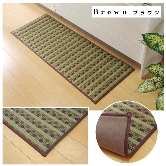 Fドロップ キッチンマット マット い草 オールシーズン 国産 日本製 ドット柄 お手入れ簡単 夏 抗菌防臭 調湿 消臭 空気清浄 汚れにくい 滑りにくい 80×270cm マルチ ブラウン