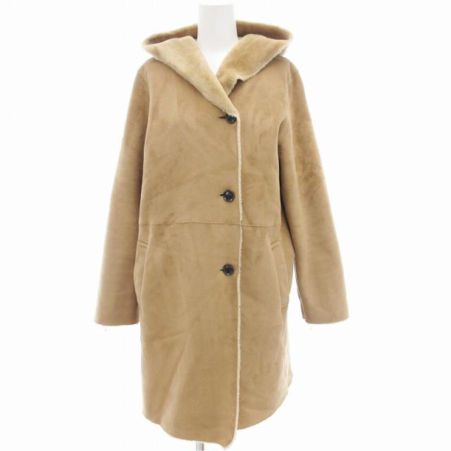 【中古】アーバンリサーチ ドアーズ URBAN RESEARCH DOORS コート ミドル丈 フェイクムートン フード 1 ベージュ