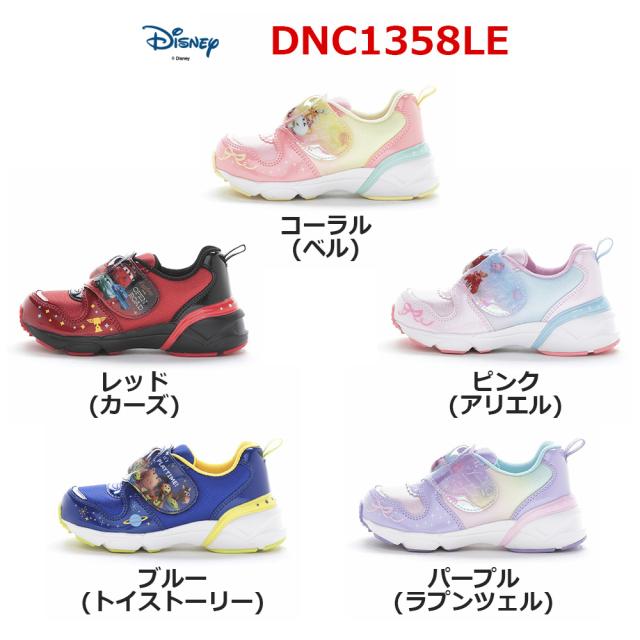 ディズニー キッズ 光る靴 DN C1358LE LED Disney 子供靴 夜も安心 女の子 女子 男の子 男子 コーラル(ベル) レッド(カーズ) ピンク(アリエル) ブルー(トイストーリー) パープル(ラプンツェル) 14.0-19.0cm DNC1358LE ムーンスター