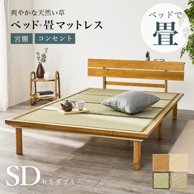 畳ベッド セミダブル フレームのみ KOTO ベッド タイプ2種類対応 幅130×奥行216×高さ52.5/67.5/72.5×床面高12.5/27.5/32.5cm たたみベッド 敷きふとん 組み立て式 爽やかな天然い草を使用 床面高3段階調節可能