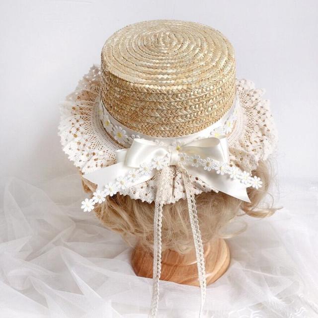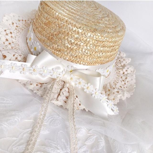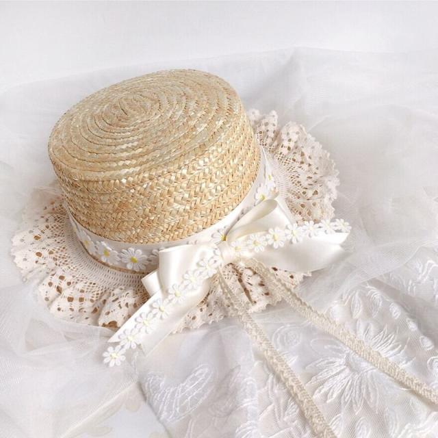 麦藁帽子 ストローハット レース ノスタルジック レトロ リゾート 日除け