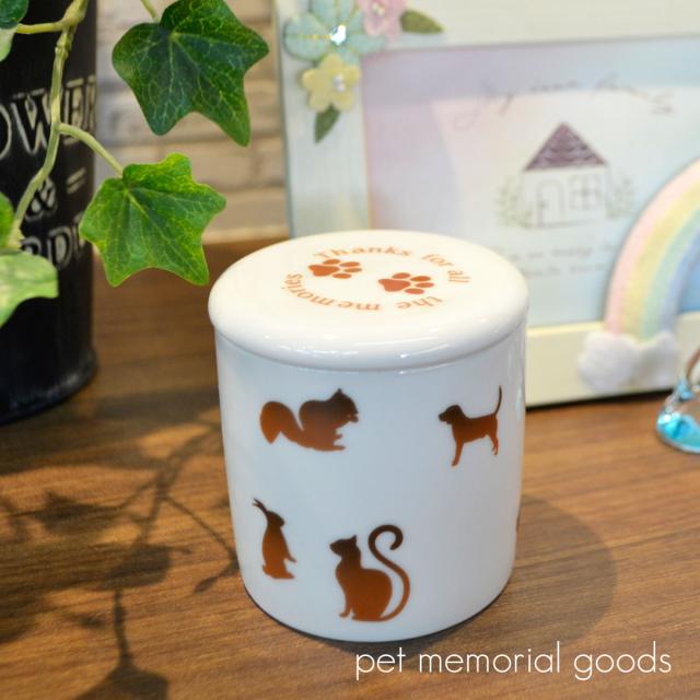 シリコンパッキン付きミニ骨壺 2寸 直径6cm×高さ6.8cm ペット アニマル柄分骨つぼ 033 かわいい 手元供養 陶器製 ペットメモリアルグッズ