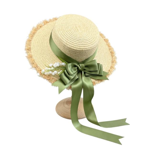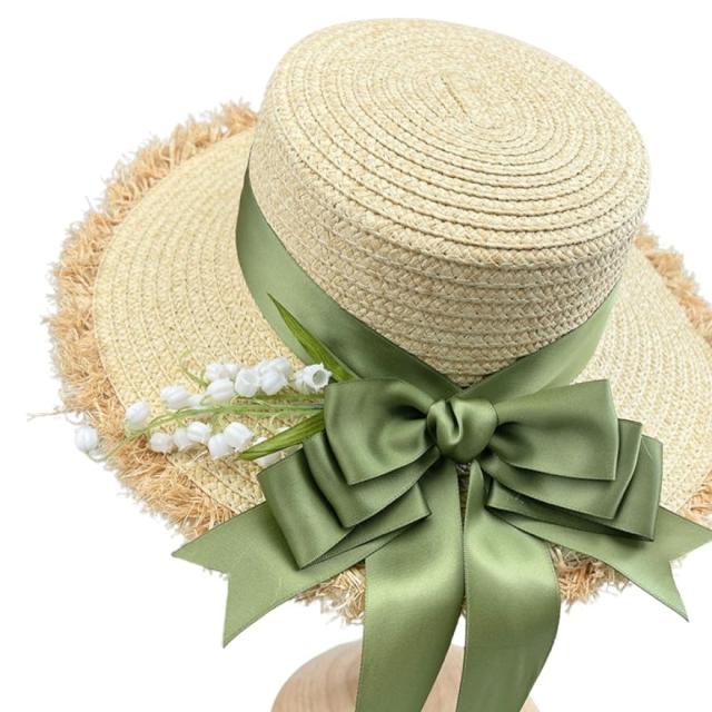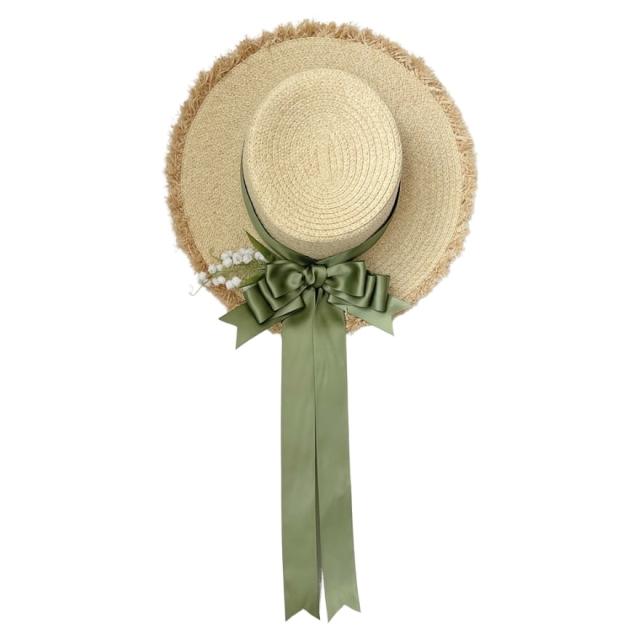 麦藁帽子 ストローハット すずらん リボン ノスタルジック レトロ リゾート 日除け
