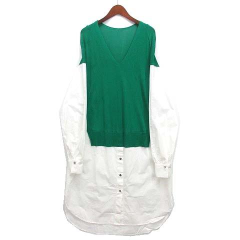 【中古】ヴァン Vin サマーニット ドッキング シャツ ワンピース ロング 長袖 グリーン ホワイト 緑 白 38 レディース