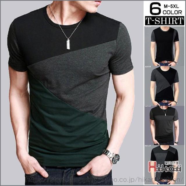 Tシャツ メンズ 夏服 配色切り替え 半袖 トップス アメカジ tシャツ カットソー スリム 半袖Tシャツ メンズファッション