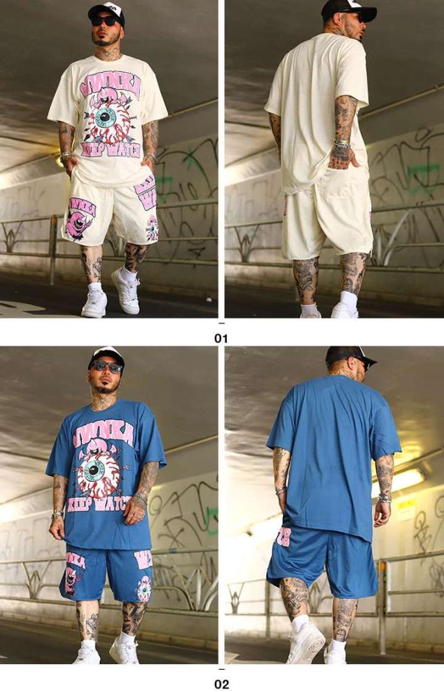 送料込み L-2XL ド派手 おしゃれ かっこいい メンズセットアップ メンズ上下セット キャラクターメンズファッション かわいい パンク バンド系 モンスター ゆったり オーバーサイズ