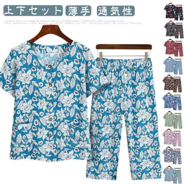 半袖 シニア ルームウェア 高齢者 Tシャツ 夏服 ワイドパンツ 花柄 おばあちゃん 婦人用 ママ 上下セット 上下セット 夏 大きいサイズ カジュアル 薄手 通気性 ゆったり お出かけ 50代 60代 XL 2XL 3XL 4XL