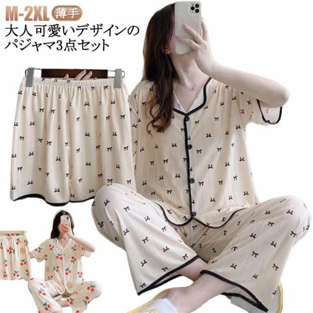 涼しい 前開き 女性 婦人用 ルームウェア 寝巻き レディース 大きいサイズ かわいい ナイトウェア 可愛い 夏 3点セット ルームウェア 部屋着 女の子 ショートパンツ ウエストゴム 上下セット ズボン ロングパンツ パジャマ
