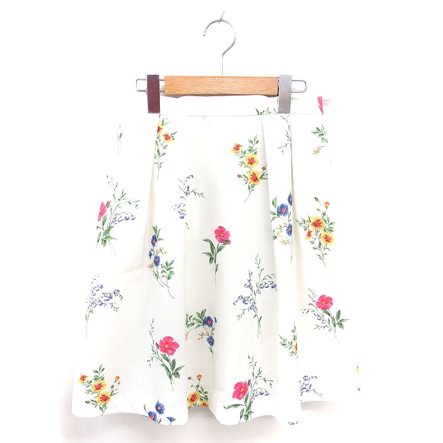【中古】リランドチュール Rirandture フレア スカート 花柄 ひざ丈 サイドジップ 2 アイボリー /TT5 レディース