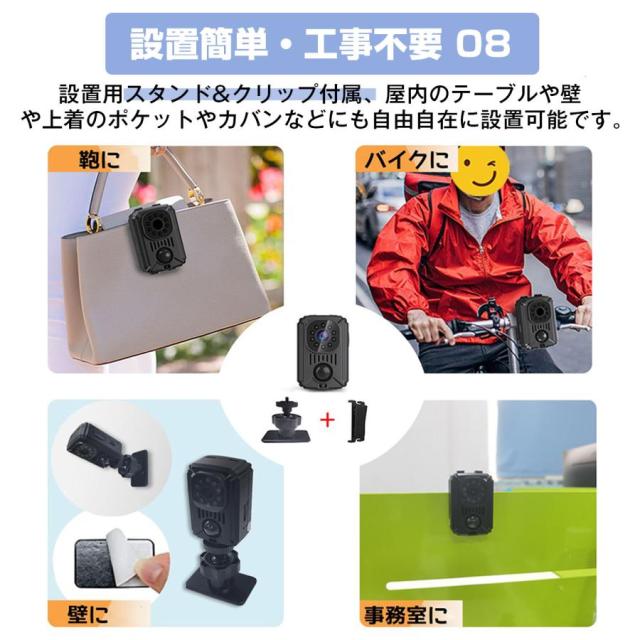 防犯カメラ 小型カメラ 長時間録画 1080P 高画質 クリップ型 監視カメラ 暗視カメラ 動体検知 小型 カメラ 車内用 赤外線 動体検知 暗視 赤外線 リアルタイム