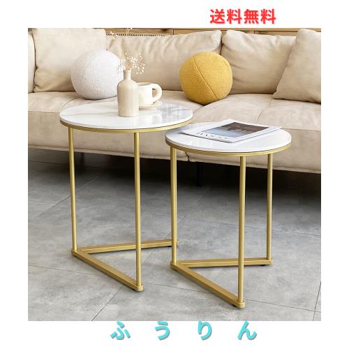 UNHO ネストテーブル 丸 大理石天板×ゴールド脚 サイドテーブル 2個セット センターテーブル ホワイト 円形 丸テーブル おしゃれ インテ