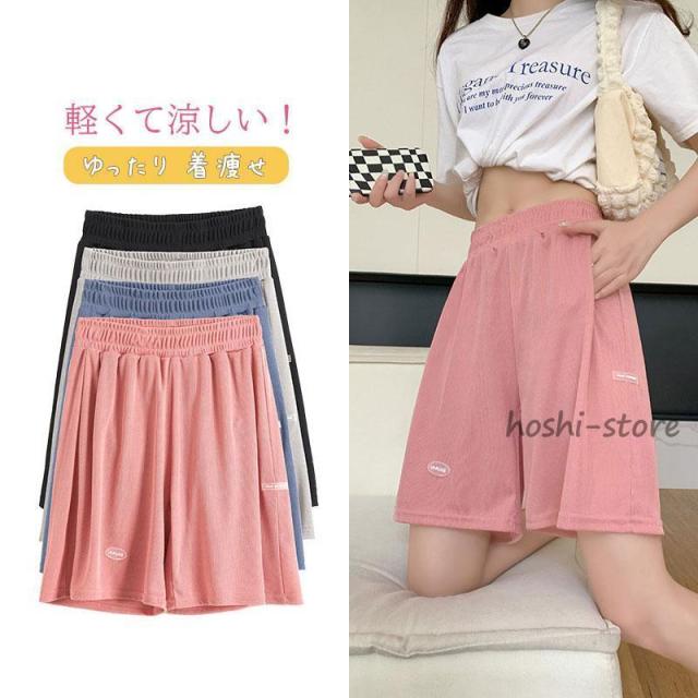 ショートパンツ ハーフパンツ レディース 運動 お出かけ 女子 美脚 着痩せ ゆったり 冷感 部屋着 ひんやり 膝上 ウエストゴム ボトムス