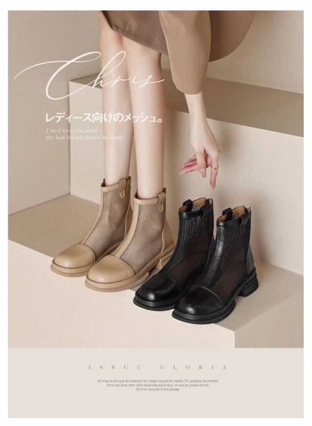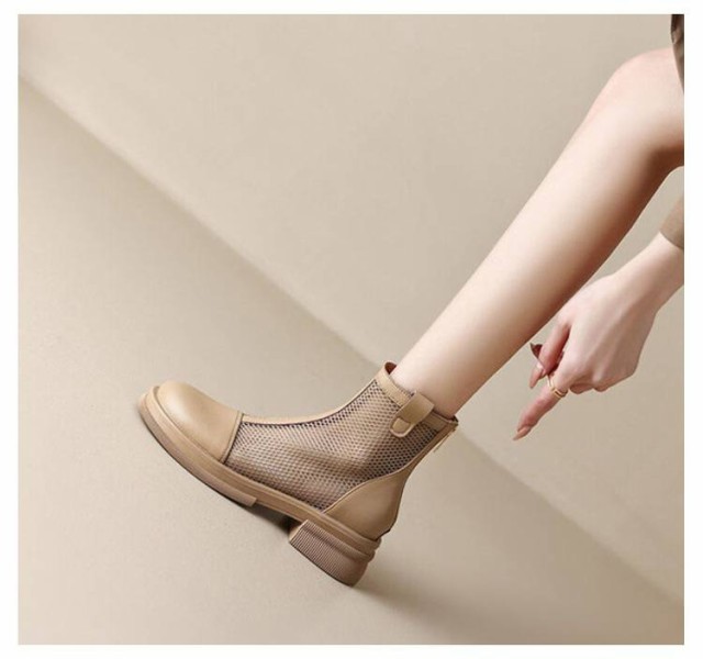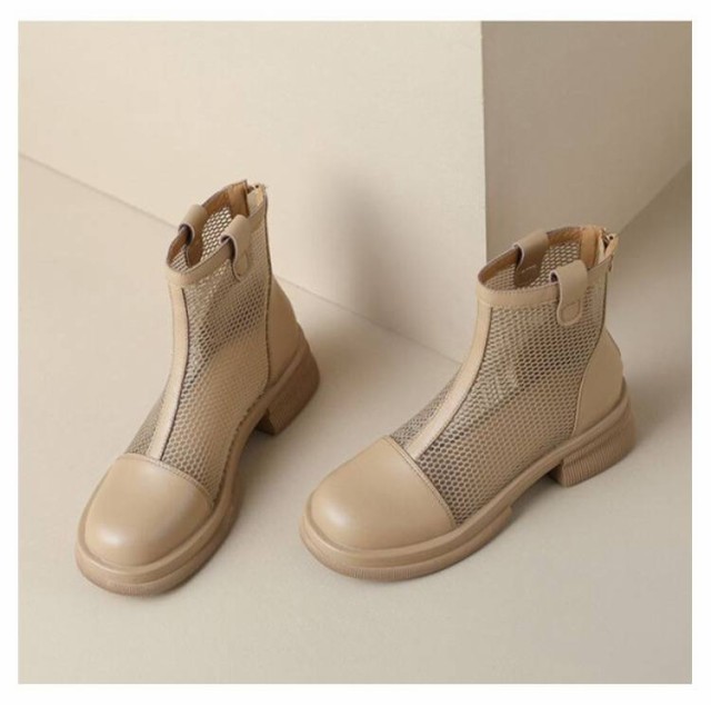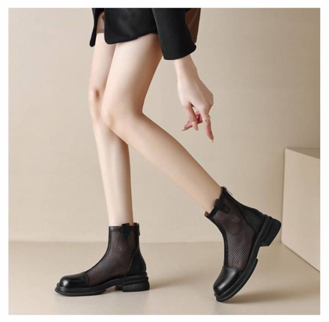 レディース ブーツ 靴 サマーブーツ メッシュ ショートブーツ 軽量 サンダルブーツ 薄手 サマーブーツ ブーツサンダル 春夏 ショート丈 シューズ ブラック ブラウン