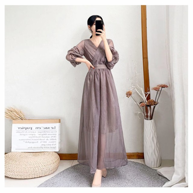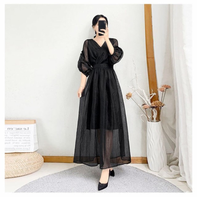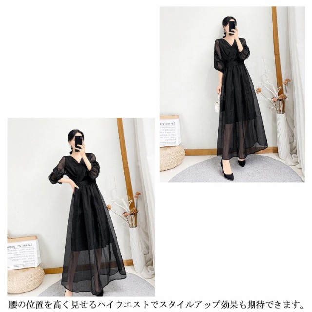 チュールワンピース レディース ロング丈 ドレス 7分袖 レディース Vネック ハイウエスト 着痩せ お洒落 きれい 裏地付き パーティー 結婚式 二次会 大きいサイズ 春夏 オシャレ ロング丈 ワンピース 姫系 パーティー 二次会 発表会 きれいめ 送料無料