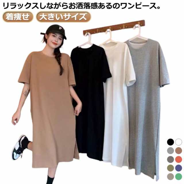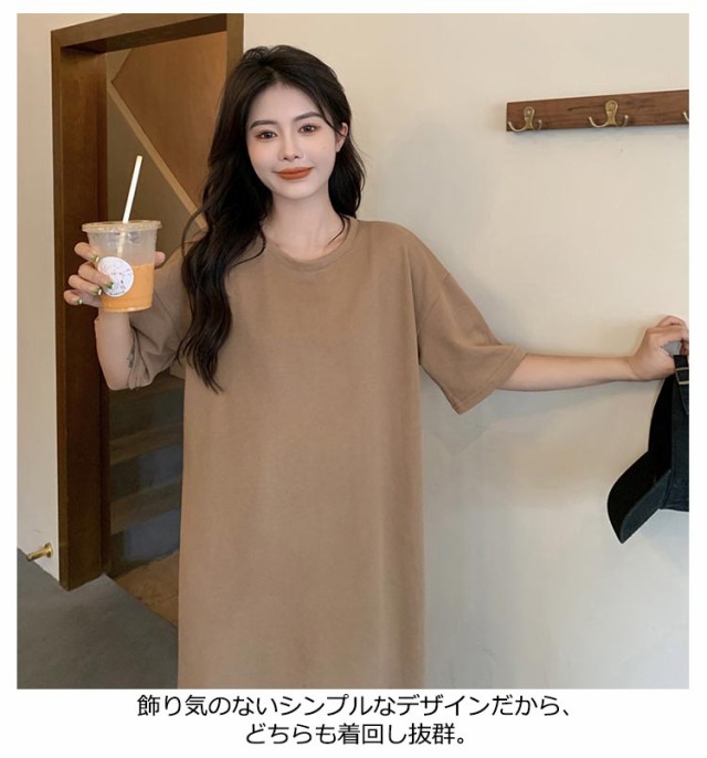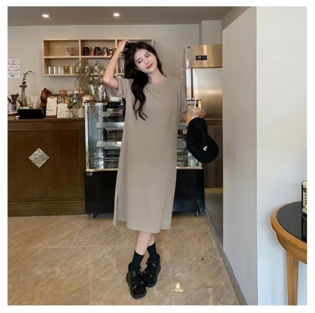 無地 シンプル 春 tシャツワンピ ロング 可愛い マキシワンピース マキシ スリット Tシャツ ワンピース レディース トップス カットソー ロンT 柔らかい 夏 ゆったり ラウンドネック ルームウェア UVカットプリント入り ロングTシャツ