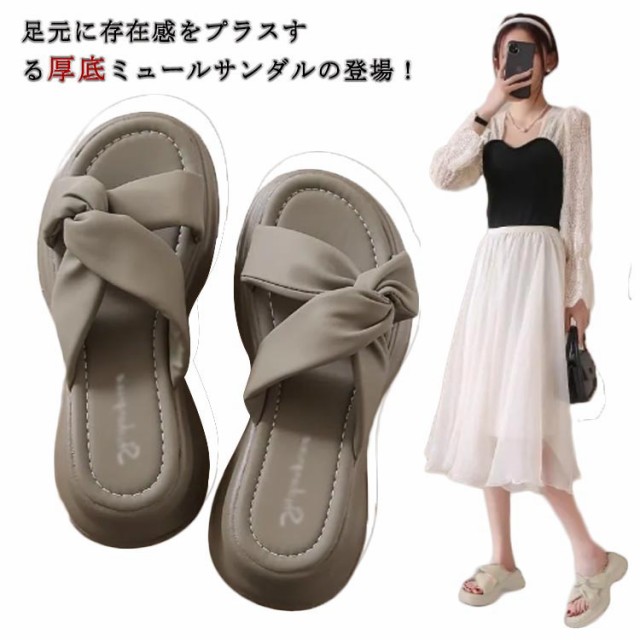 | 足元に存在感をプラスする厚底ミュールサンダルの登場! しっかり覆われているのでホールド感があり安定した履き心地が魅力的。 かかと部分がないので、手を使わずに脱ぎ履きできる楽ちん仕様。 さらにヒール効果で、スタイルアップと女性らしさを引き立たせることが出来ます! 美脚サンダルだからこそ叶えられる美しいラインが女性らしさを演出。 デニムやワイドパンツにはもちろんですが、タイトスカートやワンピースなどとの相性も良い。 | |