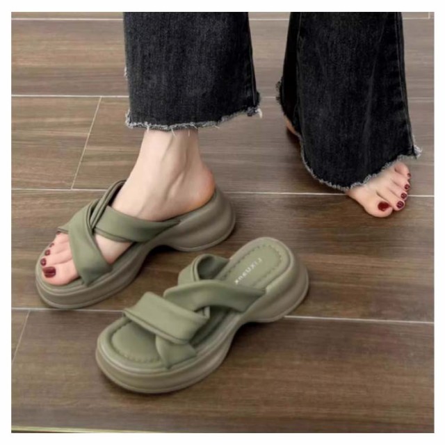 厚底スリッパ コンフォート 厚底 ビーチサンダル 夏 サンダル 厚底スリッパ ハイソール レディース 厚底靴 厚底サンダル 通気性 オープントゥ 美脚 軽量 ミュール コンフォートサンダル 足に優しいサンダル 22.0cm?25cm ブラック ミュール