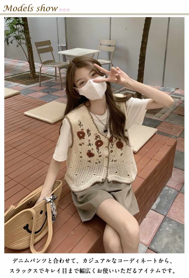 全20柄 20代 30代 レディース 透かし編み 柄 かぎ編み ジレ エスニック 大きいサイズ 花柄 刺繍 トレンド風 かぎ針 ベスト 全20柄 春 春夏 人気 カジュアル