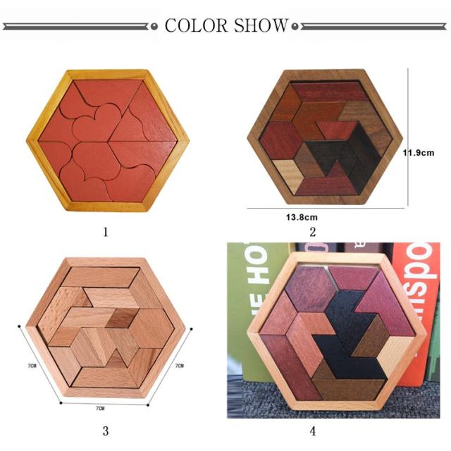 木製パズル 全7種類 パズル 木のおもちゃ ブロック 六角形 子供 教育 教材 知育玩具 形合わせ はめこみ 模様づくり 積木 ブロック 送料無料 知育玩具 学べる 3歳 4歳 5歳 6歳 キッズ クリスマス 誕生日 プレゼント 幾何