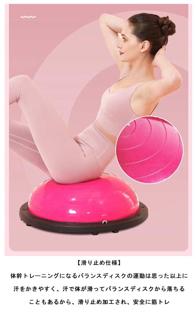 | 直径が58cmあるのでゆとりがあるサイズ。アームバンド2本付属されているので、トレーニングの幅も広がります。 【滑り止め仕様】体幹トレーニングになるバランスディスクの運動は思った以上に汗をかきやすく、汗で体が滑ってバランスディスクから落ちることもあるから、滑り止め加工され、安全に筋トレ 【素材】丈夫なABS素材の2.5mmボードサイド&6本ゴムの足座により、バランスドームが力を均等に負担し、安定のベースの内部が凹面デザインを採用し、踏み込むことによる不安定現象を避け、筋トレしっかりとしたサポート 【体幹トレーニング】あらゆるスポーツにおいて注目されている体幹トレーニング、バランストレーニングにお使いいただけます。これ1台でバランスを取りながらのスクワット、腹筋、背筋、腕立て伏せ等、トレーニングのバリエーションが広がります。マシントレーニングでは鍛えられない筋肉も鍛えられます 【トレニンーグ】3つの身体機能向上。スタビリティ(安定性)、モビリティ(可動域)、フレキシビリティ(柔軟性)。さらに、バランス能力アップ、筋力アップ、体幹強化、下半身の安定 | |