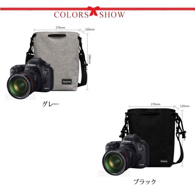 カメラバッグ 一眼レフ ミラーレス カメラケース 巾着 ショルダーバッグ 撥水 ショルダー ストラップ付き ポーチ かわいい 旅行 お写ん歩